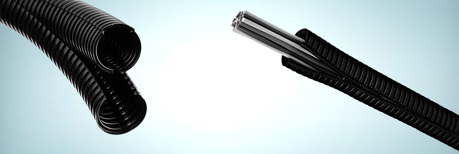 Wysokogiętkie węże poliamidowe dzielone do zabezpieczania gotowych wiązek kablowych lub instalacji.
